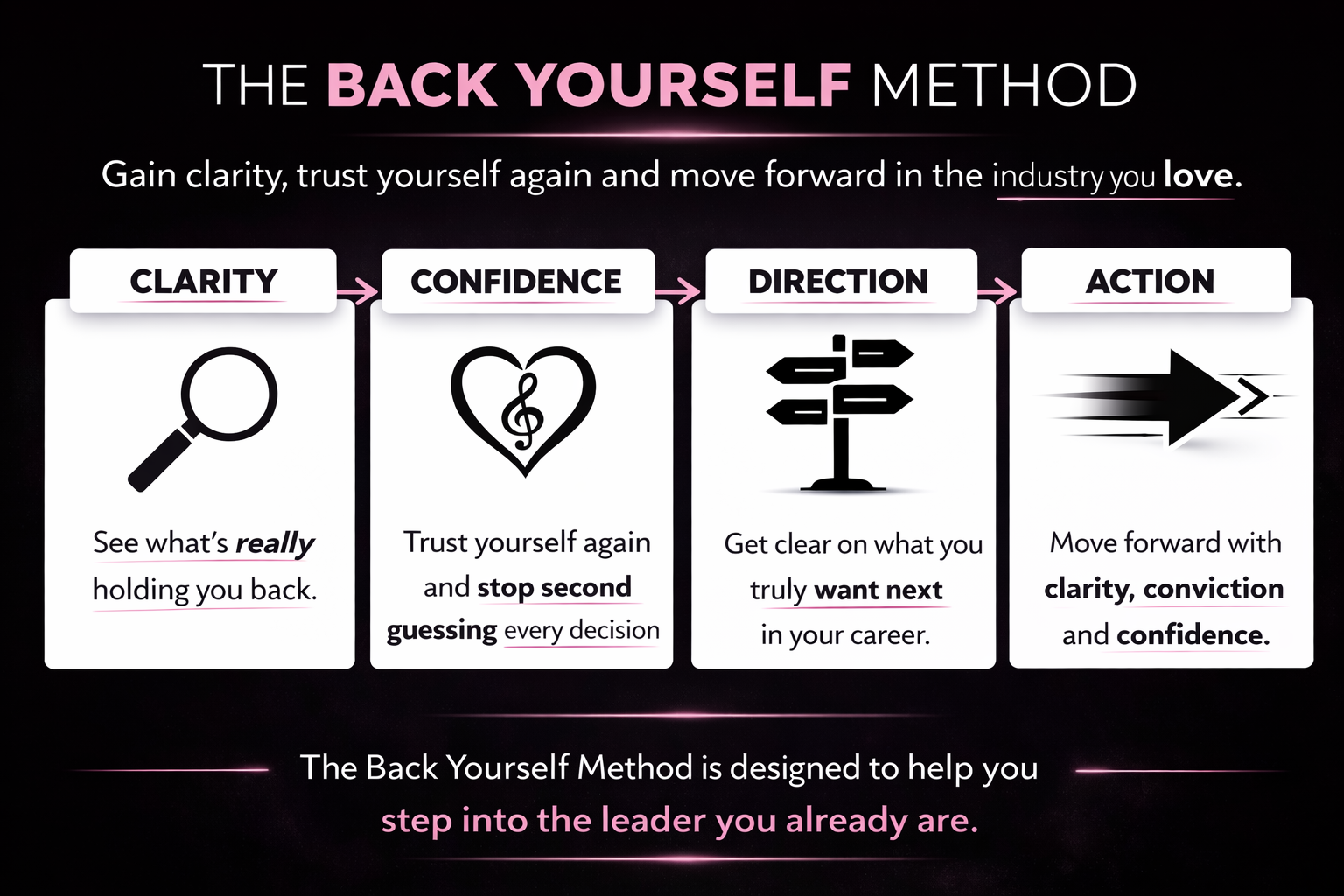 With clarity, conviction and confidence, you’ll step into the spotlight in the industry you love.